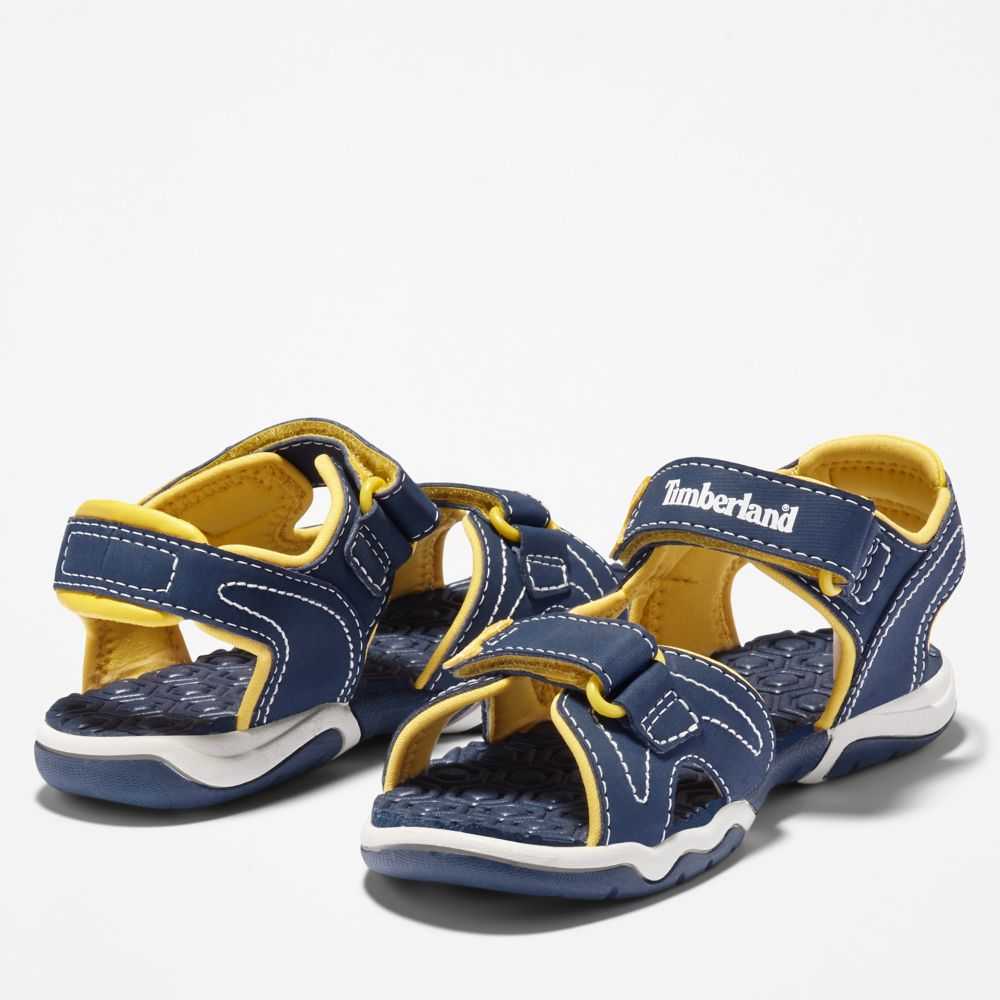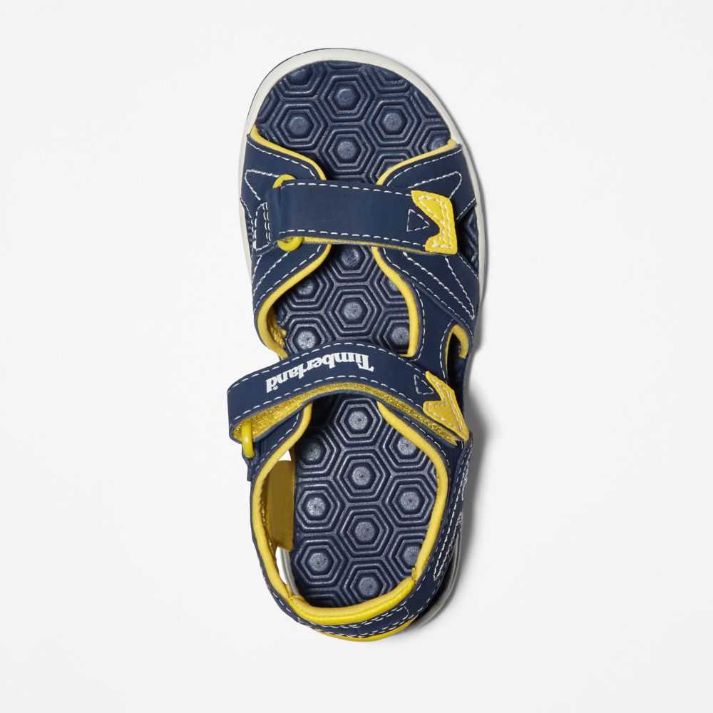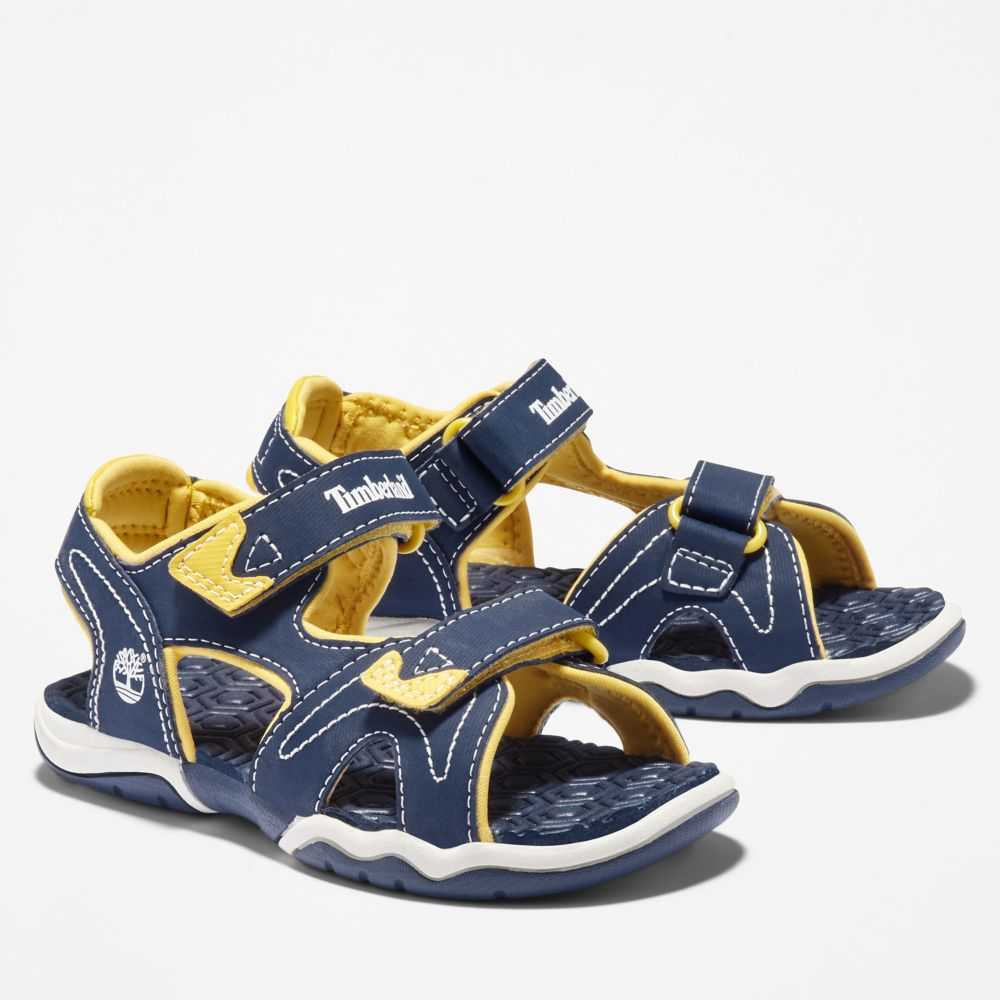 This lightweight 2-strap kids' sandal is made with water-friendly synthetic leather and features a hook-and-loop closure for convenience and ease,and an eco-conscious fabric lining.