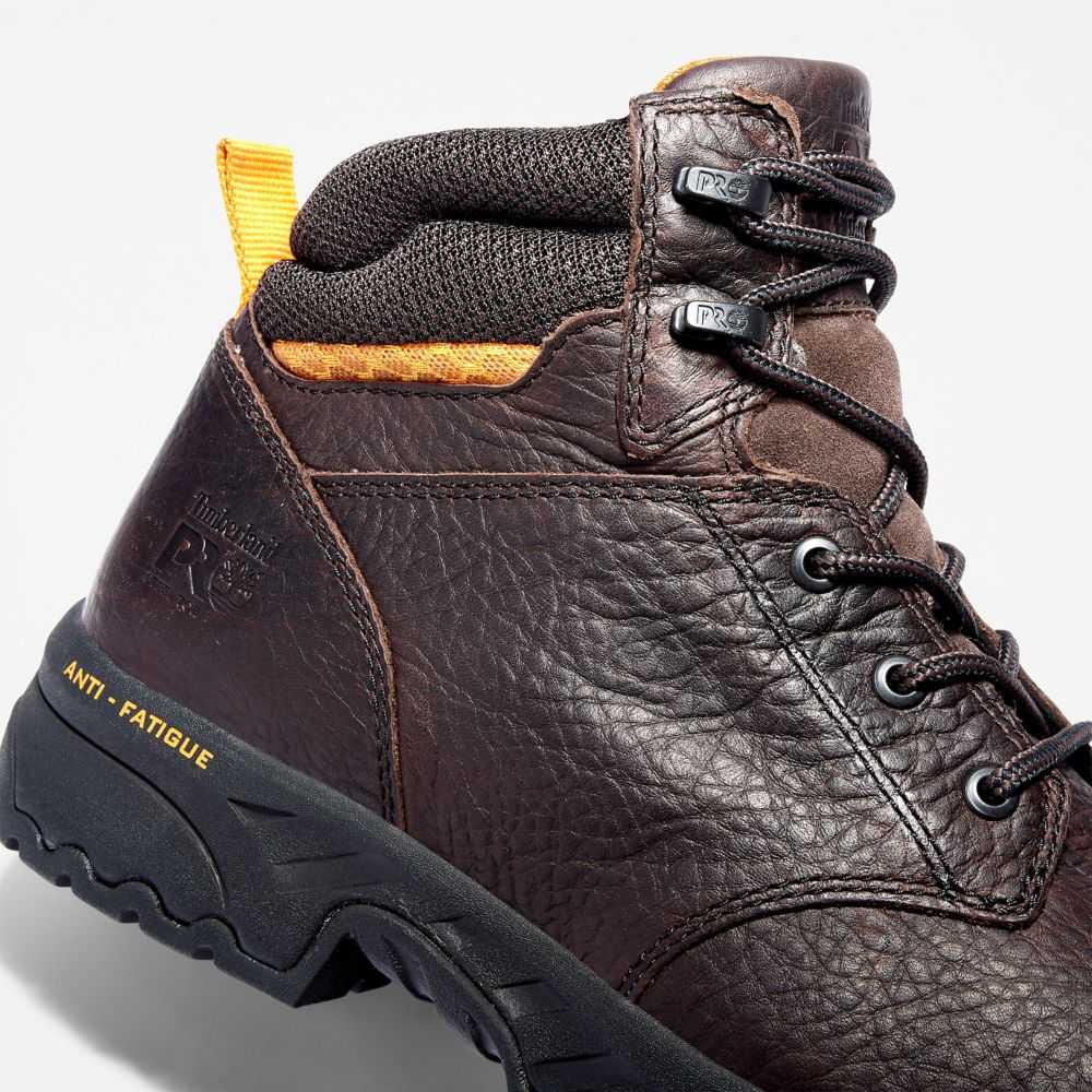 These rugged,steel-toe boots are built for comfort on the job,including cement construction for flexibility,a padded collar for a comfortable fit,and anti-fatigue technology.