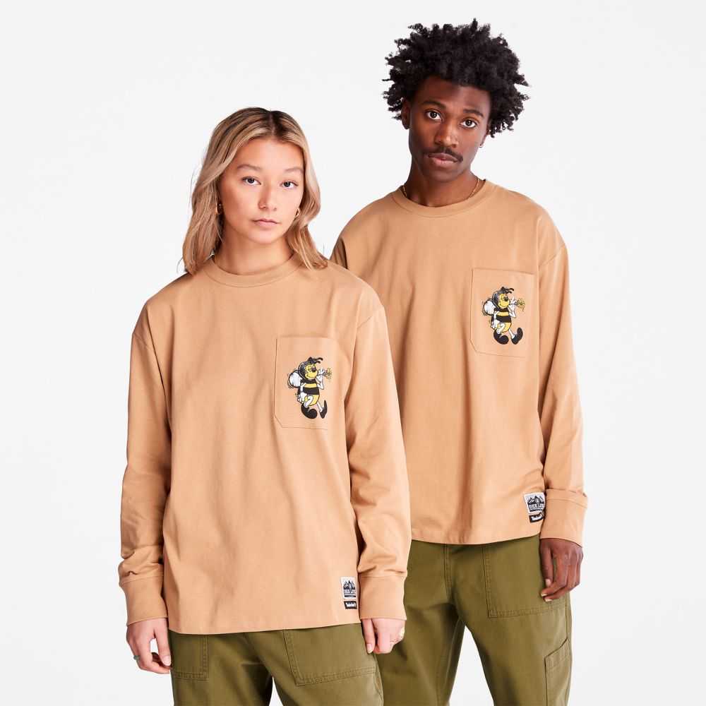 This collaboration celebrates Timberland’s rugged workwear heritage and Bee Line’s signature approach to color.Designed for comfort with a relaxed fit,this all-cotton long-sleeve tee features an eye-catching graphic print on the back.