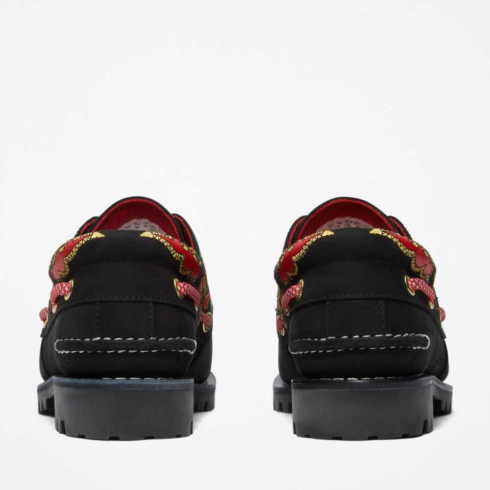 Hong Kong fashion label CLOT and Timberland have collaborated to bridge East to West.CLOT cofounder Edison Chen adds Asian-inspired designs and details to new and classic Timberland® styles,reflecting the best of both brands.Together we've reimagined our classic 3-eye boat shoe with color and Eastern-inspired silk embroidery.