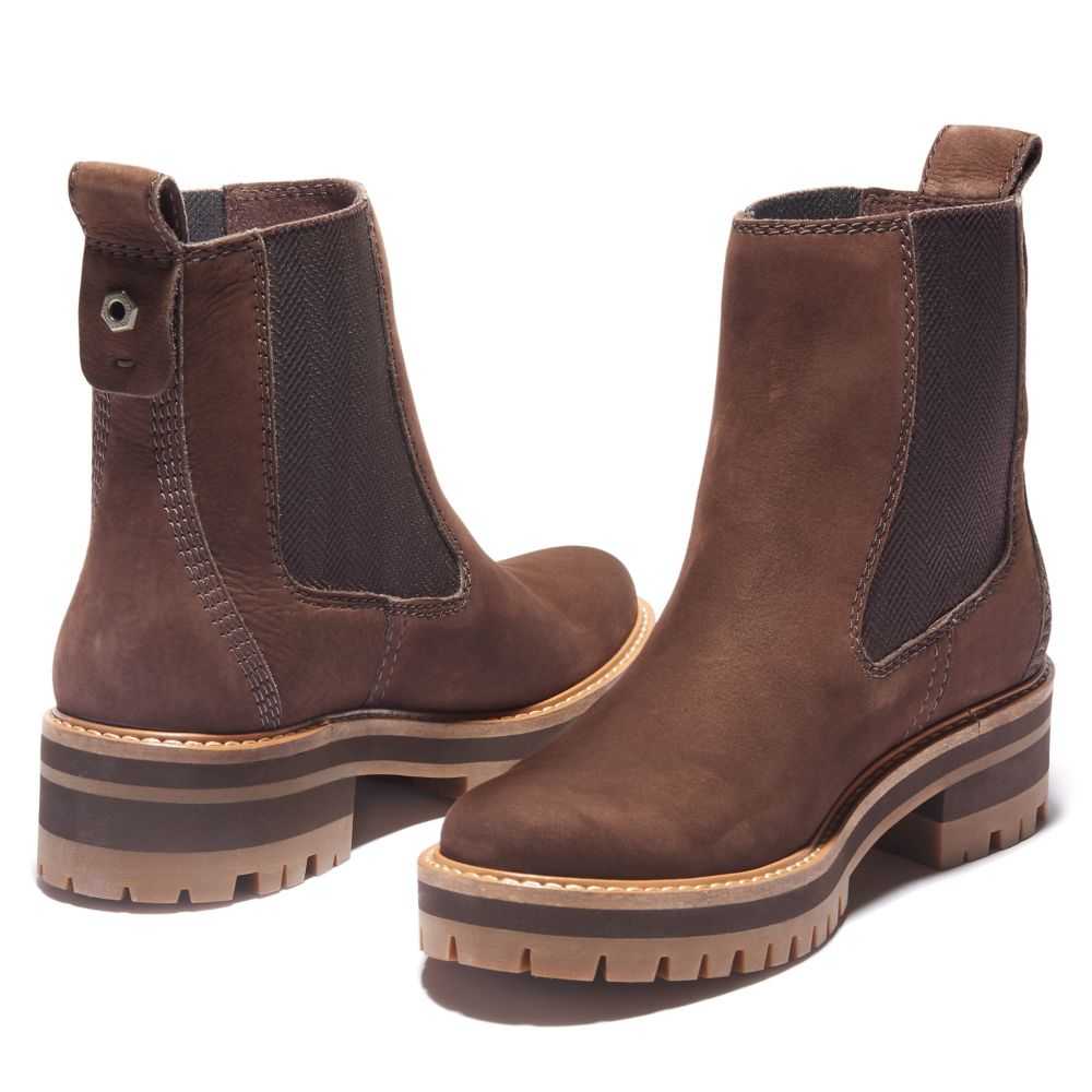 Our women's Courmayeur Chelsea boots may have rugged lug outsoles,but they feature a thoroughly feminine silhouette.A pull-tab and dual stretch gore make them easy to pull on,and we've added extra comfort features such as a flexible insole and cushiony footbed,as well as responsibly sourced materials.