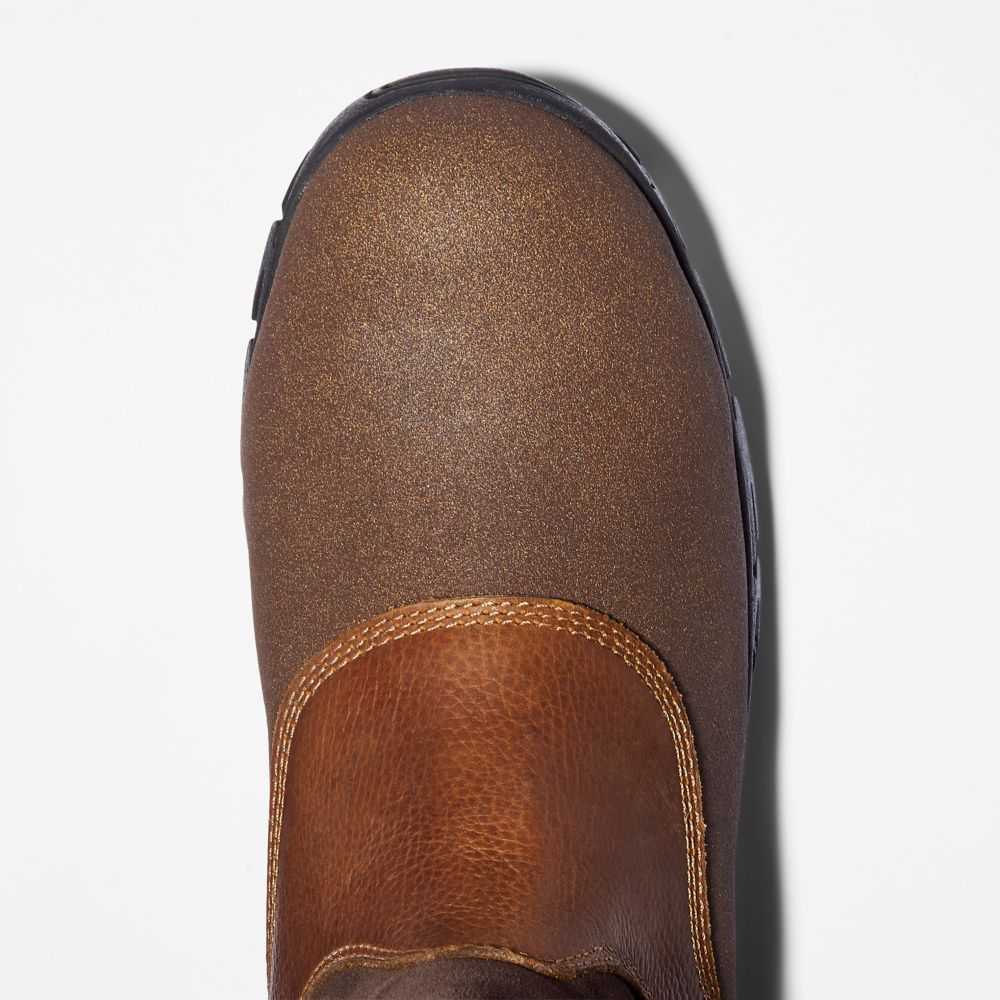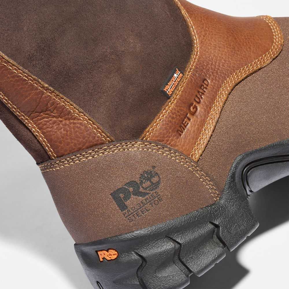 These waterproof steel-toe boots protect your feet in comfort.Featuring pull-on styling for convenience,our Excave leather boots also have a steel shank and rugged lug outsole that's designed to resist oil and grip ladders.