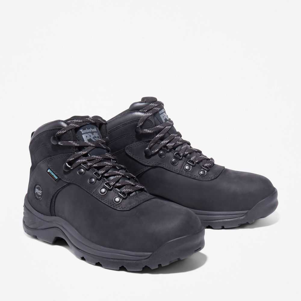 Tackle your to-do list with the support and protection of the Timberland PRO® Men’s Flume Work waterproof steel-toe work boots.Built with seam-sealed,waterproof leather uppers and a moisture-wicking,odor-fighting lining,these mid-cut work boots help keep feet dry and comfortable in wet conditions.They also feature a durable,non-slip rubber outsole that grips onto slick surfaces for reliable traction indoors and out.