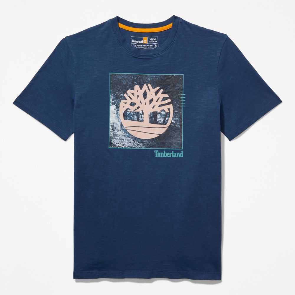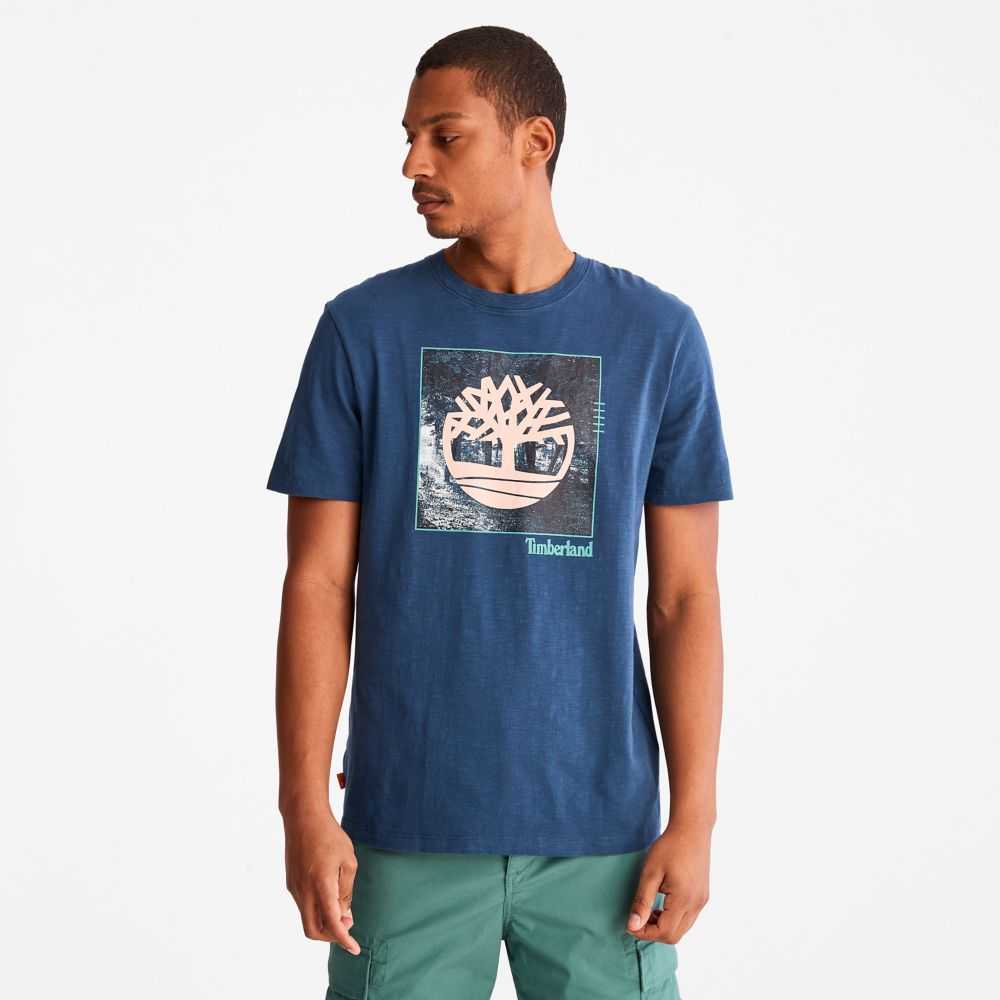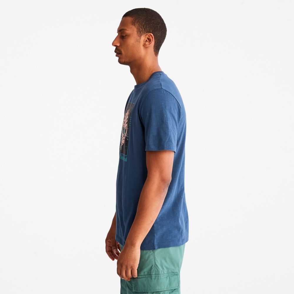 Featuring an eye-catching photographic and printed graphic on the chest,this men's tee is crafted with a rugged-looking but easy and comfortable slub fabric that's 100% organically grown.