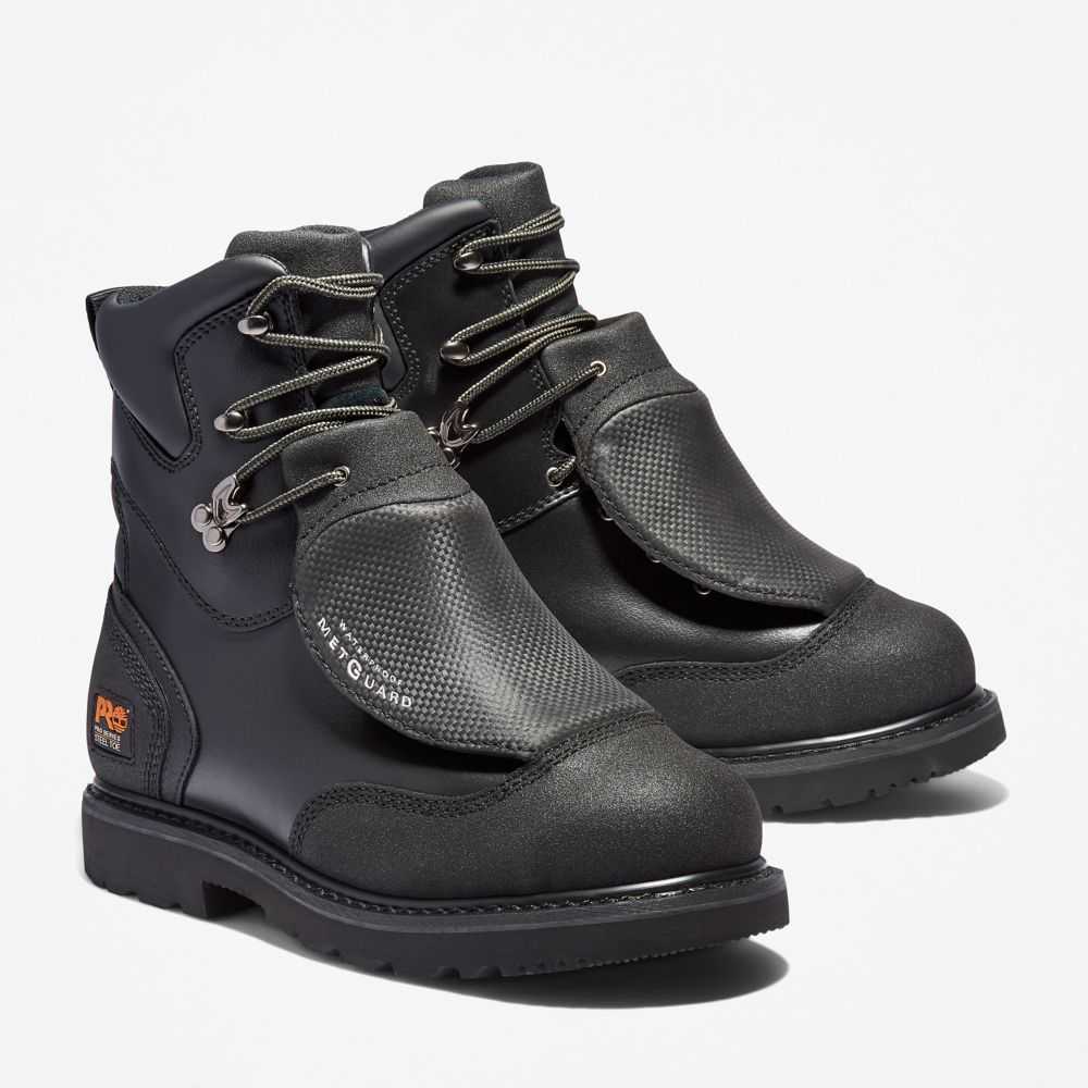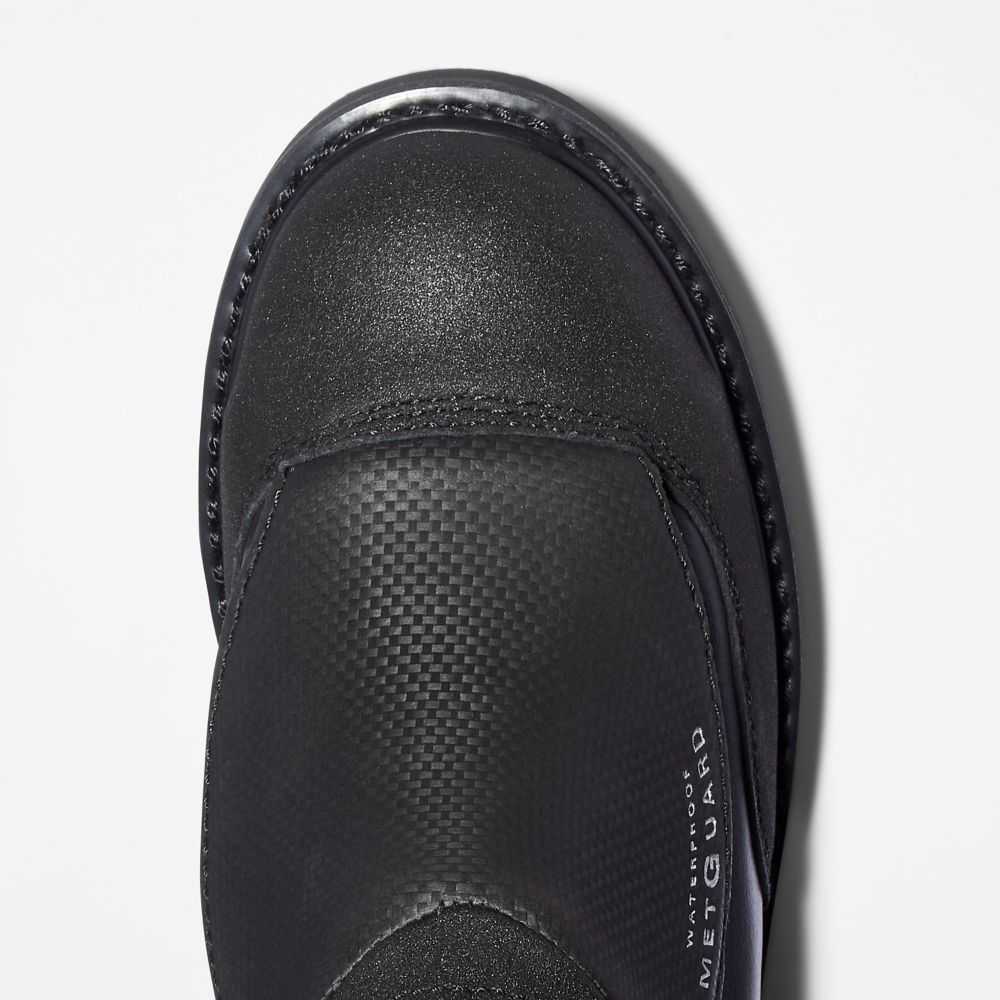This waterproof work boot won't ease up when things get tough.Constructed in Ever-Guard™ leather,this sturdy ankle boot offers superior flexibility and durability.A steel shank and comfy contoured footbed cradle and support your feet,even after a long day on the job,while a metatarsal shield and steel toe offer impact and heat protection.A slip-resistant ridged rubber outsole that offers electrical hazard protection completes its hardworking profile.