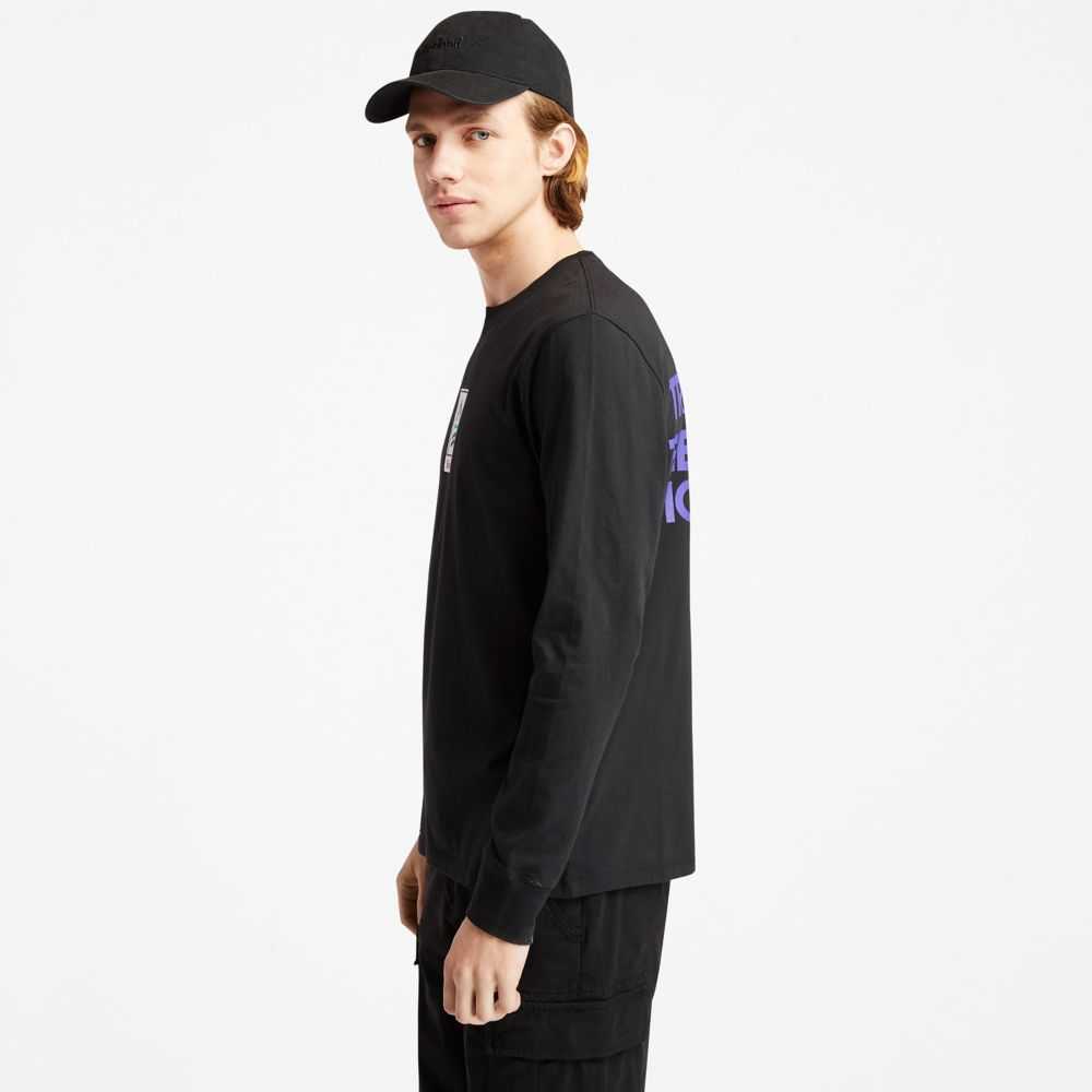 Perfect for the cool-weather months,this long-sleeve men's T-shirt has nature-inspired graphics on the front and back,and is responsibly made with 100% organically grown cotton.