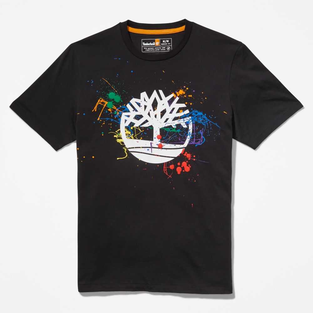 Embrace creative expression with this splatter paint logo tee,made entirely with cotton grown without harmful chemicals or pesticides.