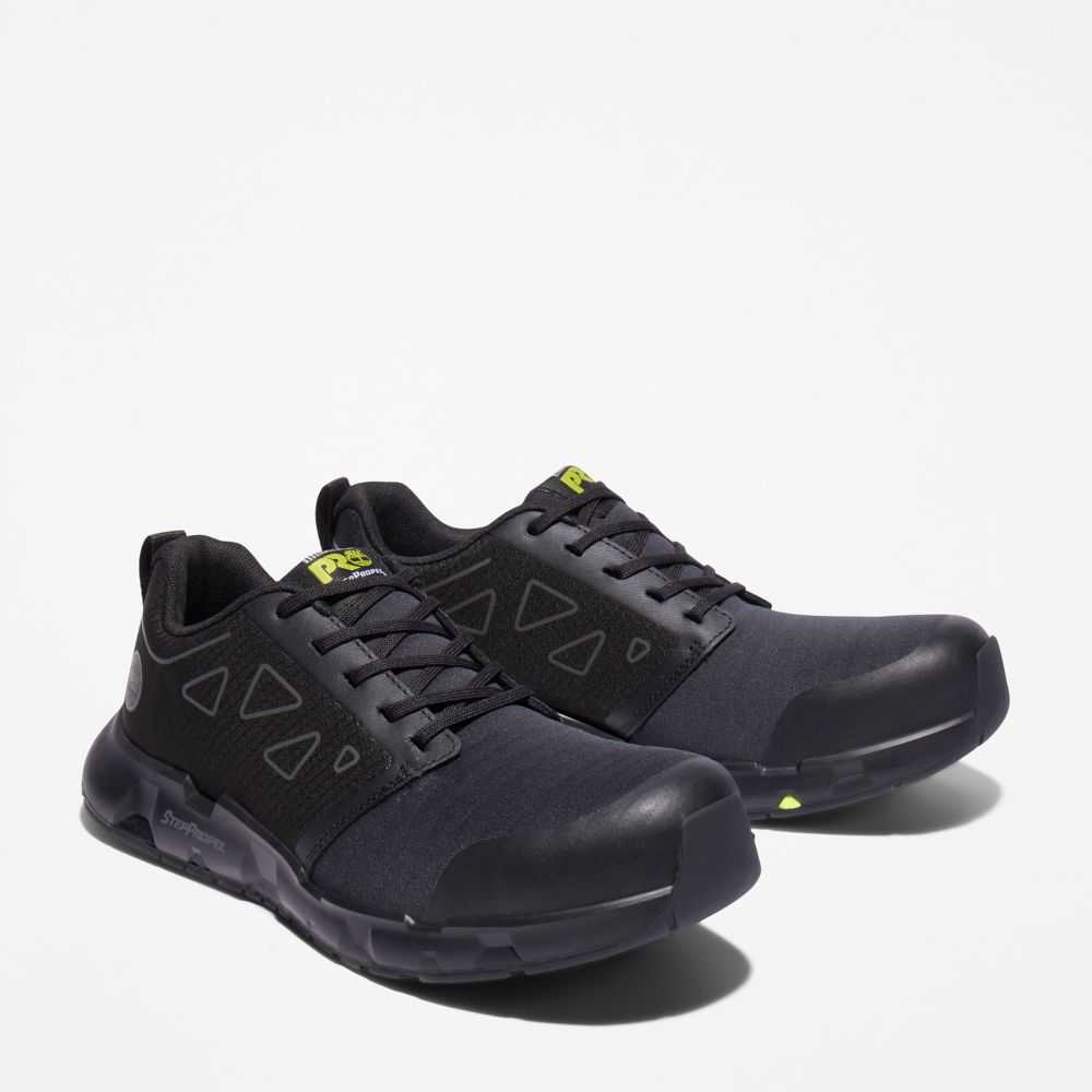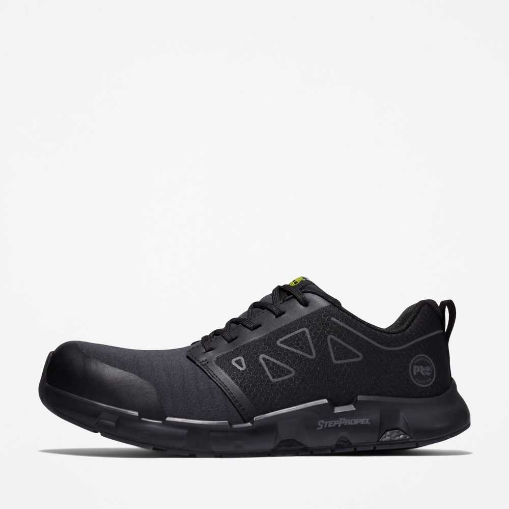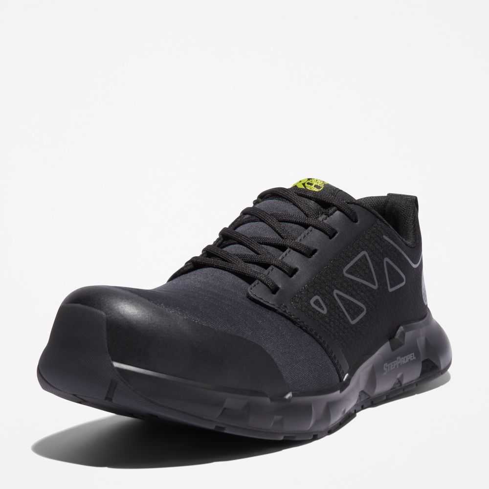 Built on an exclusive,innovative last designed to help provide momentum,energy efficiency,and increased range of motion,these alloy-toe work shoes are made with flexible,breathable materials and feature electric hazard protection,all-weather outsoles,and a StepPropel™ midsole for unparalleled shock absorption and energy return.