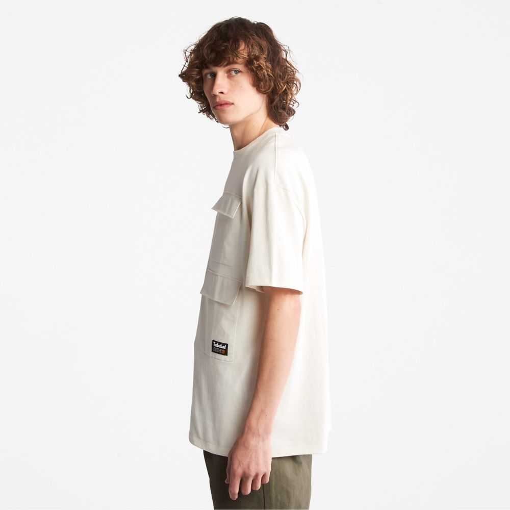 Worksite-inspired design at the edge of utility.Great for those cooler summer days,this comfortable,relaxed-fit T-shirt has handy cargo pockets and is made with heavyweight cotton fabric that's been organically grown.