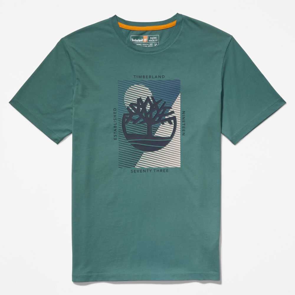 The Timberland tree logo gets a pigment-printed graphic treatment on this men's tee made from cotton grown without harmful chemicals or pesticides.