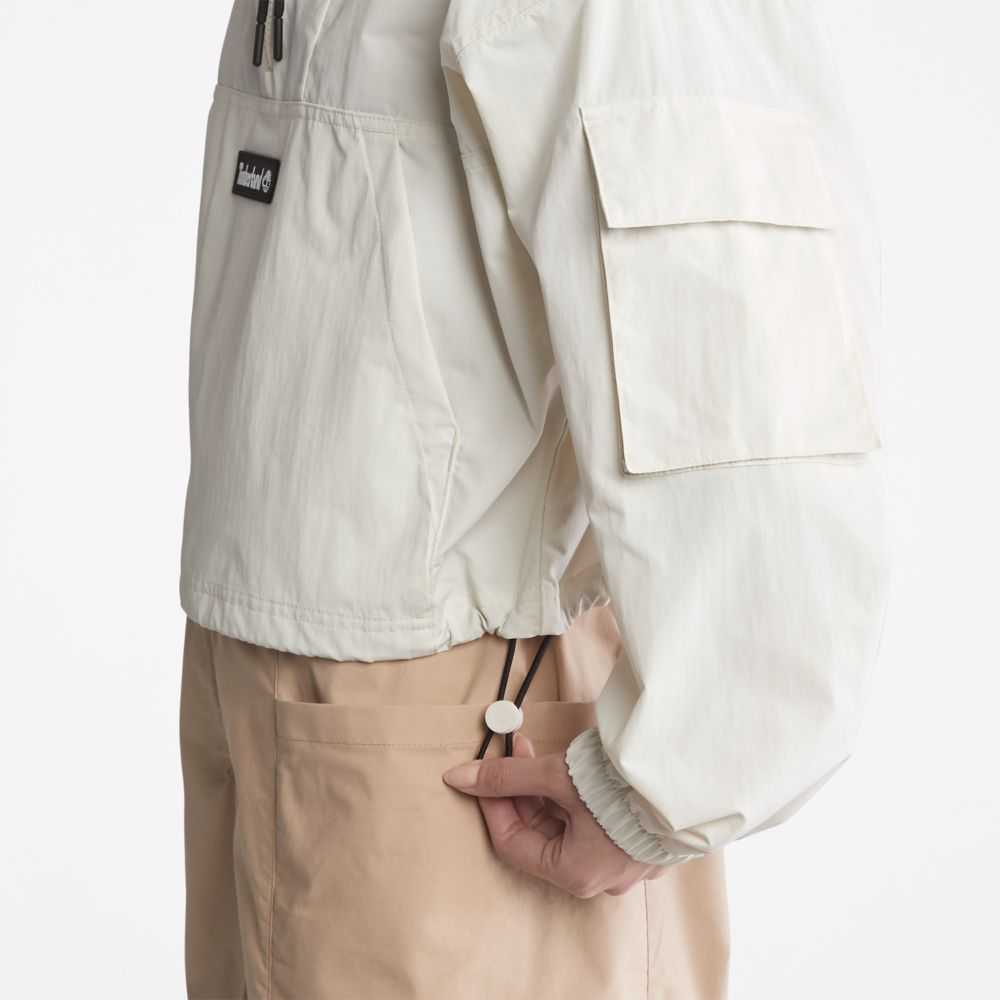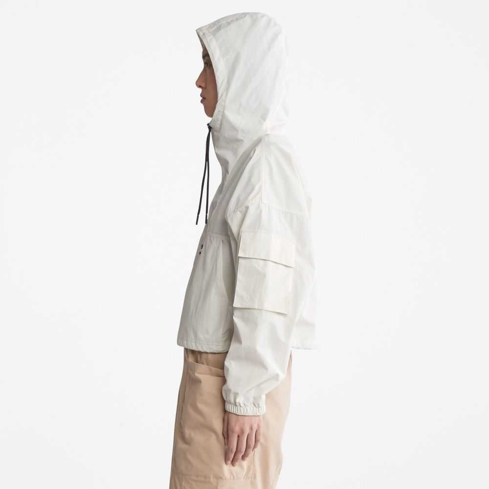 With a trendy cropped style and comfy relaxed it,this lightweight,water-repellent anorak is your go-to jacket in warmer weather.