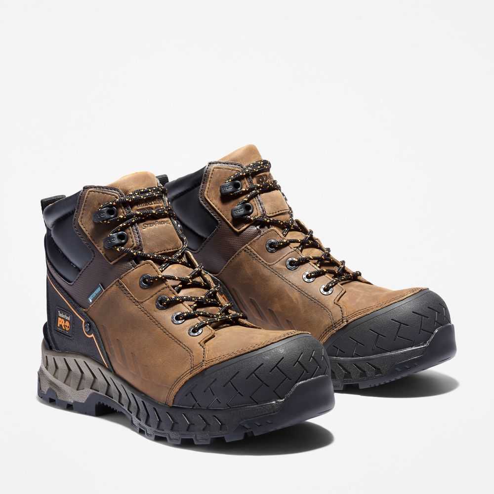 These waterproof boots feature flexible construction,a cushioned footbed for shock absorption and energy return,and a fiberglass shank for the ultimate in all-day comfort and support.