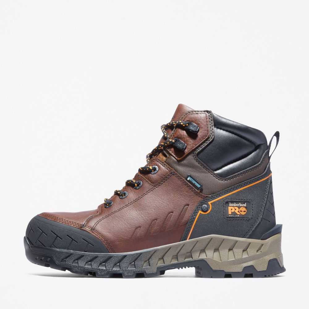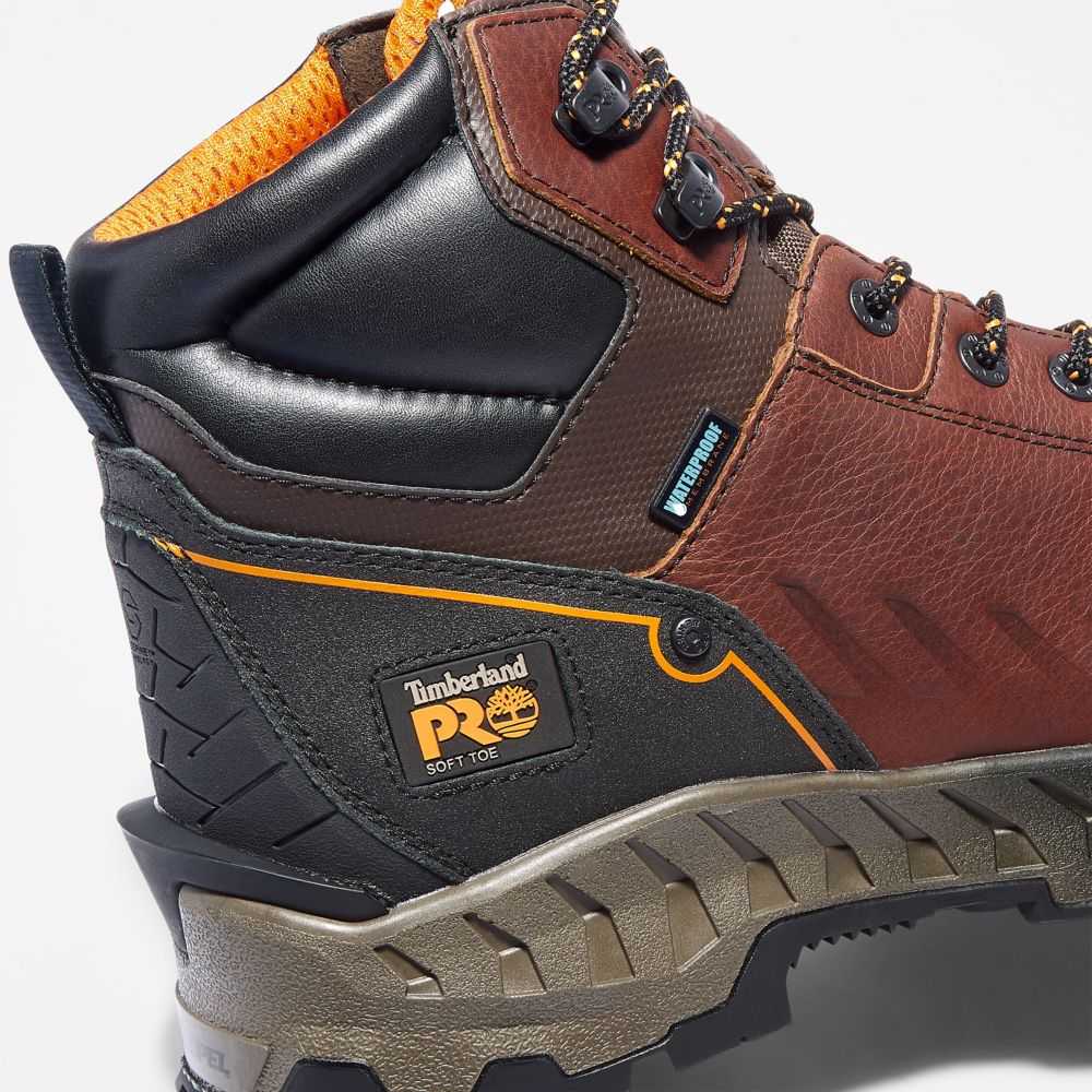 These waterproof boots feature flexible construction,a cushioned footbed for shock absorption and energy return,and a fiberglass shank for the ultimate in all-day comfort and support.